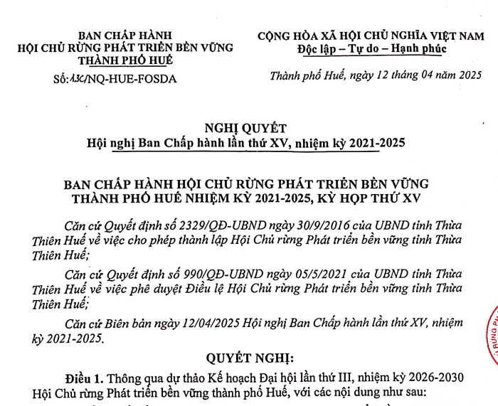 Hội nghị điểm hướng dẫn triển khai chính sách hỗ trợ xây dựng phương án quản lý rừng bền vững và cấp chứng chỉ FSC Ngày 21/02/2025, Hội Chủ rừng Phát triển bền vững thành phố Huế (HUE-FOSDA) phối hợp với Chi cục Kiểm...