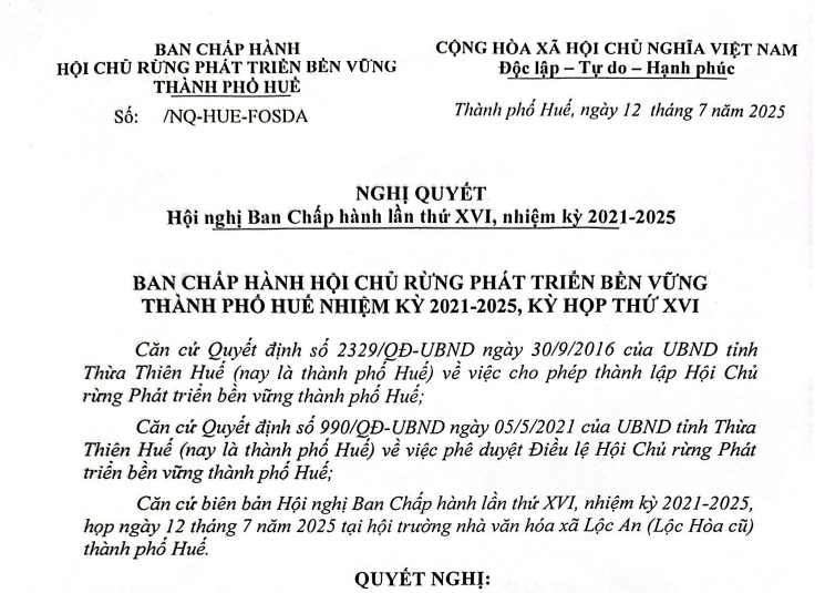 củng cố tổ chức và thúc đẩy sinh kế cộng đồng gắn với bảo tồn tài nguyên rừng trên địa bàn thành phố Huế”