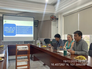Sáng ngày 19 tháng 11 năm 2025, tại văn phòng Hội Chủ rừng Phát triển bền vững Thành phố Huế (HUE-FOSDA), lãnh đạo và các cán bộ đã tiếp và làm việc với đoàn công tác của Tổ chức WWF gồm bà Stephanie Wester, Cán bộ cấp cao Chương trình thuận thiên & Hợp tác doanh nghiệp, WWF-Hoa Kỳ, ông Nguyễn Vũ, GĐ Chương trình NbS-OP (khởi tạo giải pháp thuận thiên), WWF- Việt Nam và ông Viên Kim Cương, Tư vấn tài chính bền vững để trao đổi đánh giá hiện trạng cũng như tiềm năng xây dựng các mô hình tài chính bền vững ở Huế với đối tượng chủ rừng quy mô nhỏ có chứng chỉ FSC do HUE-FOSDA là pháp nhân đại diện; về mô hình liên kết chuyển hoá gỗ lớn của Hợp tác xã Lâm nghiệp Bền vững Thuận Thiên (Thuận Thiên SFC) trong chuỗi cung ứng rừng trồng keo gỗ lớn đạt chứng chỉ rừng và định hướng hợp tác trong thời gian tới.