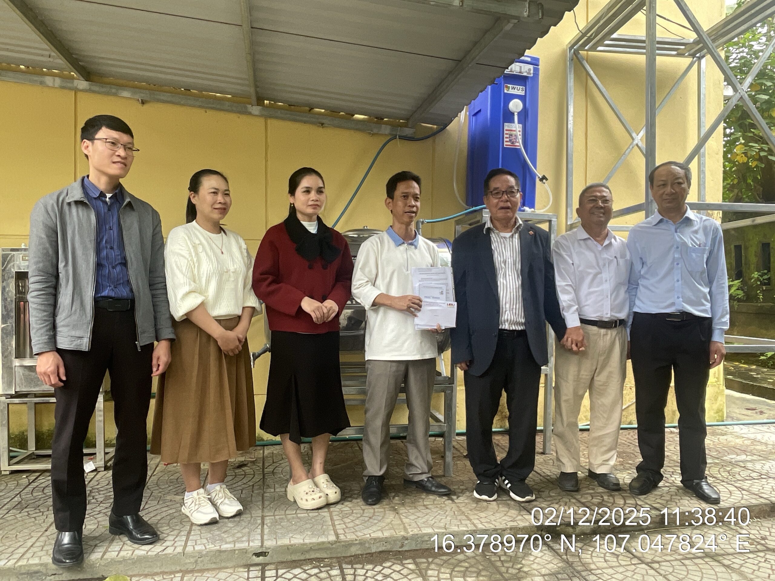 Phát biểu khi bàn giao máy lọc nước cho các trường, Tiến sĩ Bùi Công Thọ nhấn mạnh ý nghĩa thiết thực của thiết bị PAUL đối với việc cải thiện chất lượng nước uống tại các trường học, góp phần bảo vệ sức khỏe học sinh và cộng đồng trong bối cảnh nhiều địa phương còn gặp khó khăn về nguồn nước sạch.